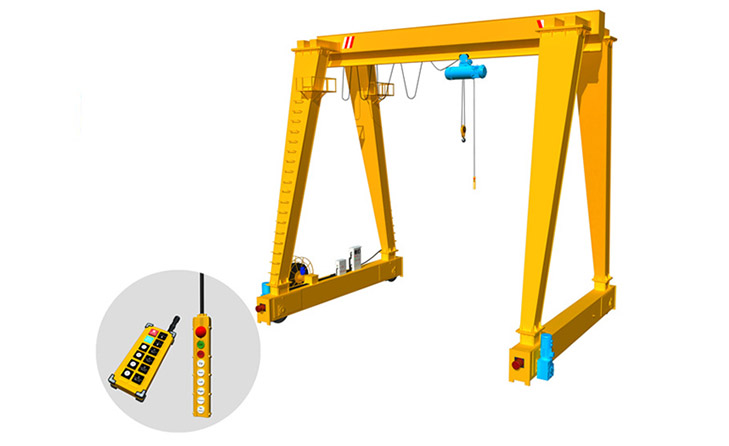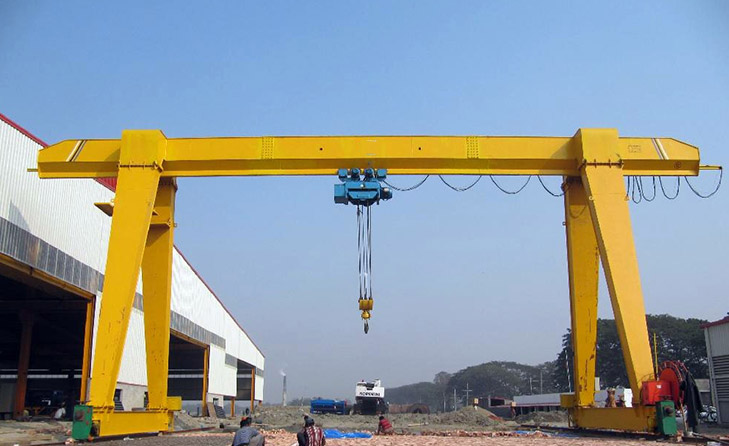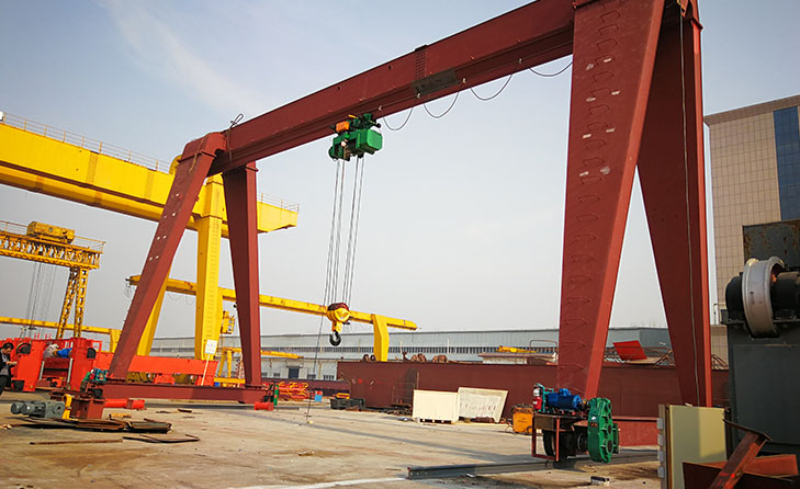 The box type single girder gantry crane is usually equipped with standard CD MD electric hoist as the lifting mechanism, and the electric hoist traversing along the lower flange of the I- steel of the main girder, which is made of high quality steel plates, such as, C-steel and I-steel.