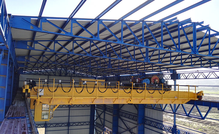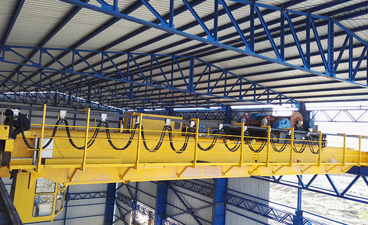 Main Parts: main girder, end carriages, lifting winch trolley, electric control box, overload limiter, limit switch, anti-collision buffer, insulation board, insulating motor, high temperature resistance power cables and electric components, cabin control with air-conditioner.